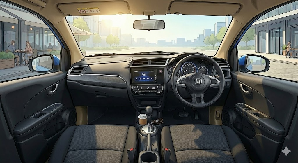 Masuk ke dalam kabin, Honda Brio menawarkan interior yang sederhana namun fungsional.