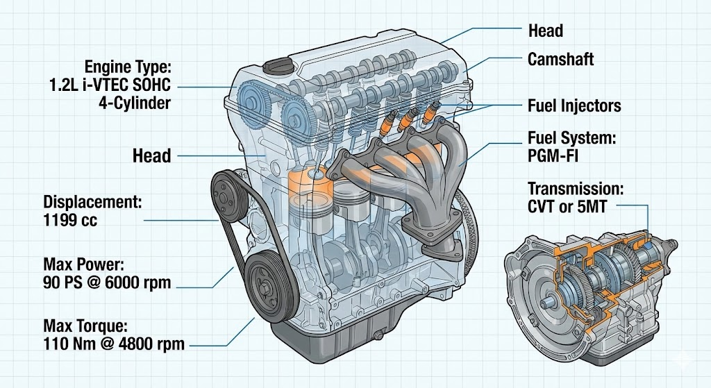 Honda Brio dibekali mesin yang irit, responsif, dan terkenal awet.