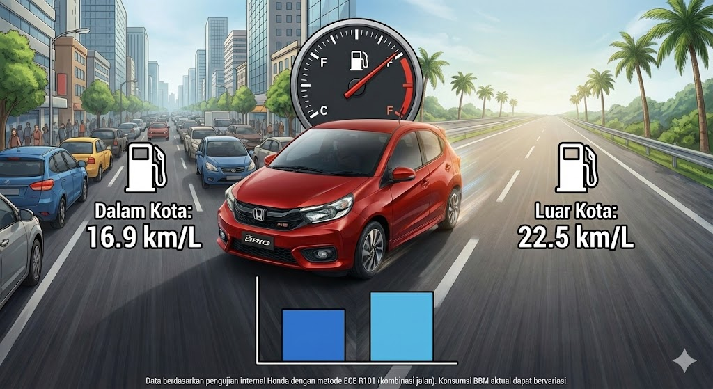 Angka ini menjadikan Honda Brio sebagai salah satu city car paling irit di Indonesia.