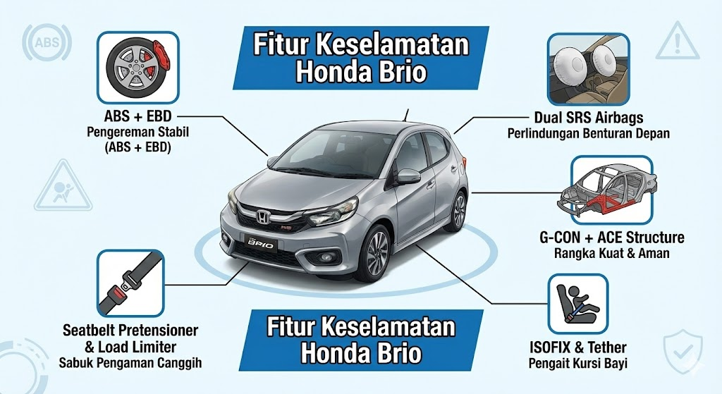 Untuk kelasnya, fitur keselamatan Honda Brio sudah cukup memadai.