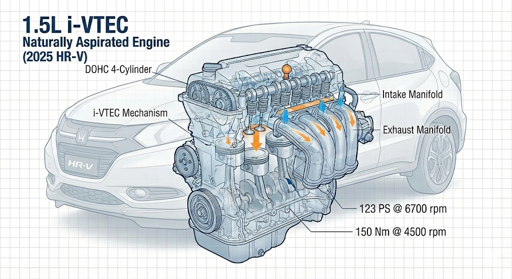 Honda HR-V hadir dengan beberapa pilihan mesin yang disesuaikan dengan tipe.